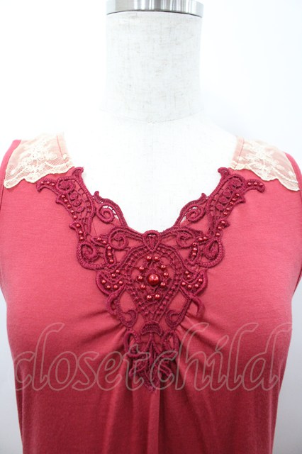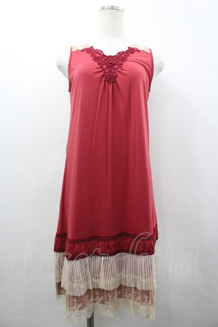 axes femme / フロントレースパールノースリーブワンピース 赤 I-26-03-02-056-AX-OP-SA-ZI [2100060000051919-I-26-03-02-056-AX-OP-SA-ZI]
