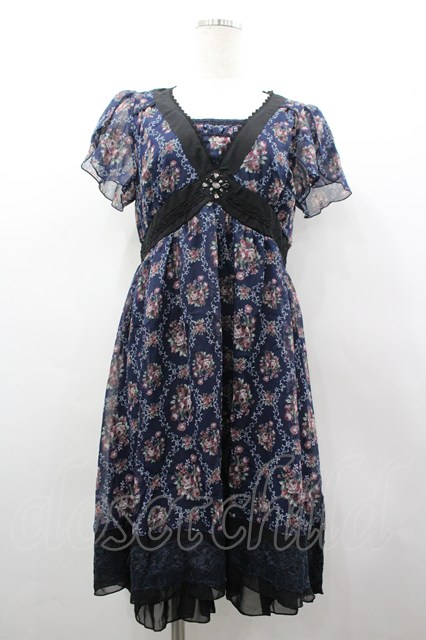 axes femme / バラオーナメントフレームワンピース M 紺 I-26-03-02-065-AX-OP-TE-ZI