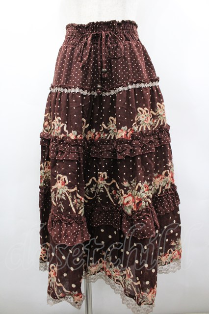 axes femme / ドット×薔薇スカート M ブラウン I-26-03-02-084-AX-SK-TE-ZI