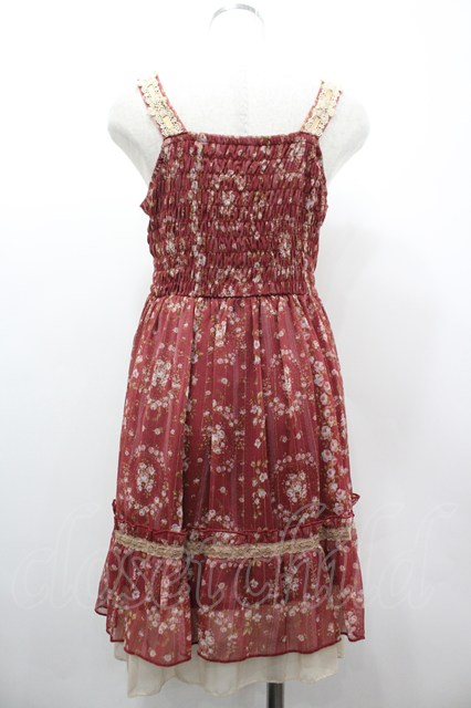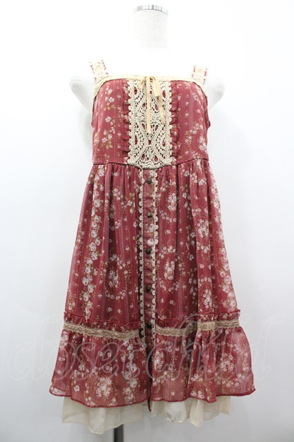 axes femme / ストライプ花柄チュニック 赤Xアイボリー I-26-03-02-041-AX-OP-SA-ZI