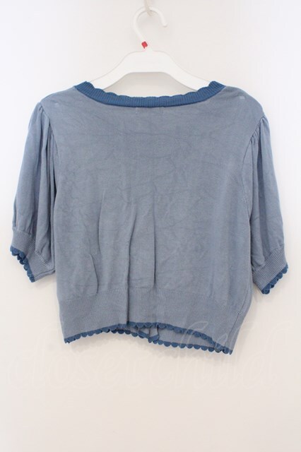 axes femme kawaii / クマ柄半袖ニットカーディガン ブルー O-26-03-03-018-AX-TO-IG-OS