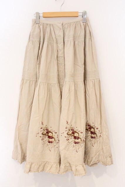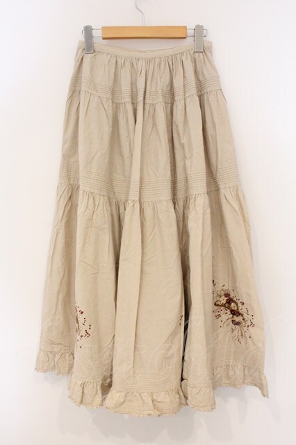 KETTY / 刺繍入りギンガムスカート ベージュ O-26-03-03-082-EL-SK-IG-OS