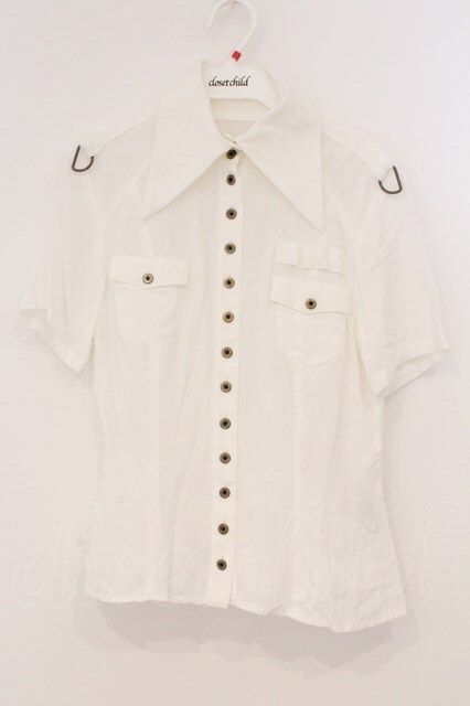 Na+H / ミリタリー半袖ブラウス ホワイト O-26-03-03-066-PU-BL-OW-OS [2100080000075746-O-26-03-03-066-PU-BL-OW-OS]