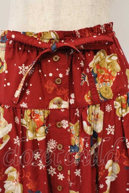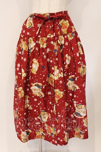 PINK HOUSE / 三つ子のくまの冬支度プリントスカート アカ O-26-03-03-014-LO-SK-OW-OS [2100080000075719-O-26-03-03-014-LO-SK-OW-OS]