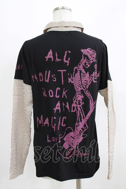 ALGONQUINS / シャツレイヤード風カットソー ブラック×ベージュ H-26-03-06-048-AL-TO-KB-ZH