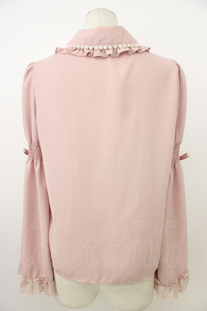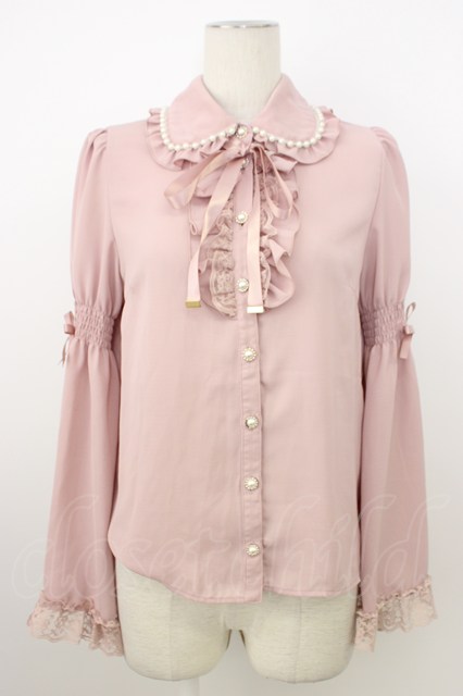 Secret Honey / パール襟フリルレース長袖ブラウス ピンク T-26-03-08-020-CA-BL-SA-ZT