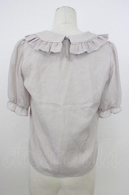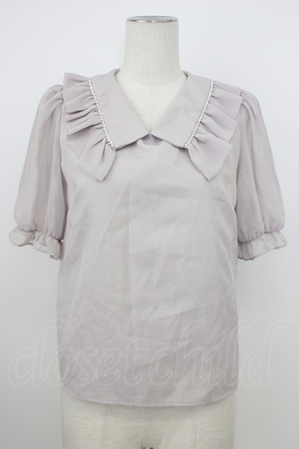evelyn / パール襟半袖ブラウス グレー T-26-03-08-021-LO-BL-SA-ZT