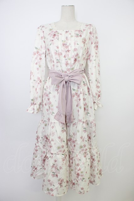 axes femme / 桜柄ティアードワンピース M キナリ T-26-03-08-033-AX-OP-SA-ZT