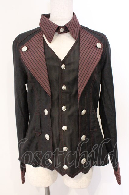 ALGONQUINS / レイヤードストライプブラウス ブラック×ワイン O-26-03-04-044-AL-BL-IG-OS [2100080000075766-O-26-03-04-044-AL-BL-IG-OS]