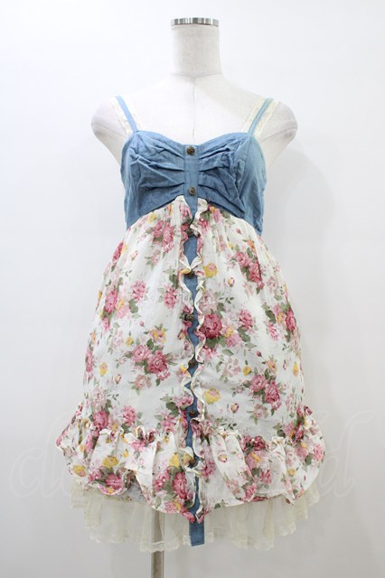 axes femme / 胸元リボン花柄ベビードール M オフ/ブルー H-26-03-06-1037-AX-OP-NS-ZH