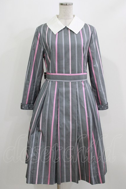 Jane Marple / Ribbon stripe jacquardのパブリックドレス グレー H-26-03-07-025-JM-OP-KB-ZH
