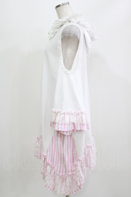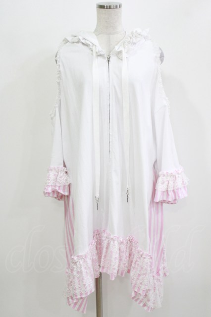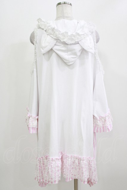 HANGRY&ANGRY / 猫耳オフショルパーカー ホワイト×ピンクストライプ H-26-03-07-058-HN-TO-KB-ZH [2100030000088747-H-26-03-07-058-HN-TO-KB-ZH]