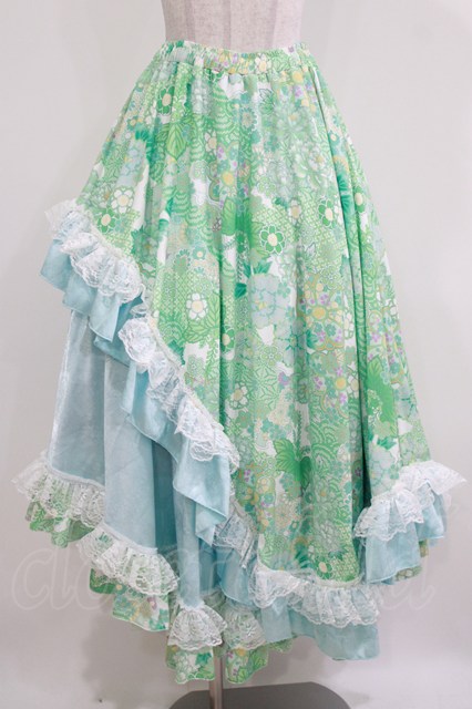 Qutie Frash / 和柄ロングスカート ミントグリーン H-26-03-07-021-QU-SK-KB-ZH [2100030000088754-H-26-03-07-021-QU-SK-KB-ZH]