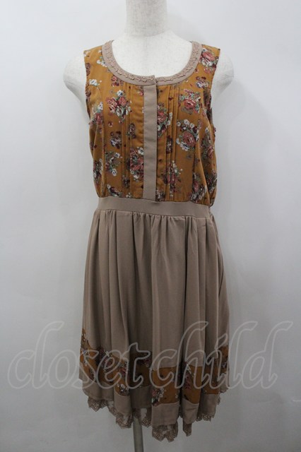 axes femme / 花柄x無地ラインワンピース M ブラウン I-26-03-04-071-AX-TO-TE-ZI [2100060000052133-I-26-03-04-071-AX-TO-TE-ZI]