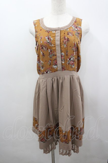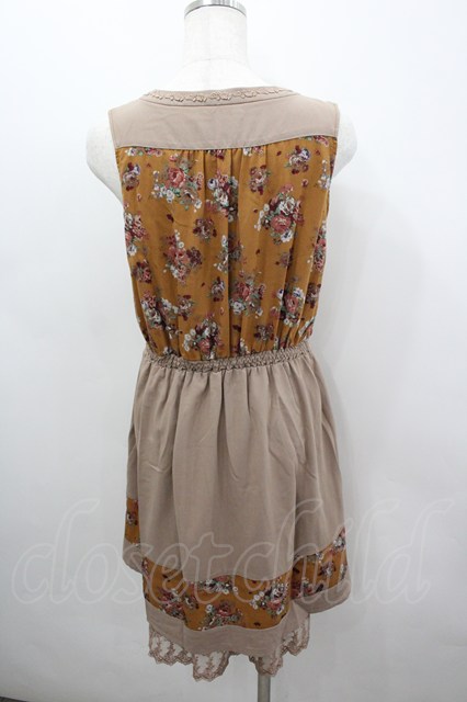 axes femme / 花柄x無地ラインワンピース M ブラウン I-26-03-04-072-AX-TO-TE-ZI [2100060000052132-I-26-03-04-072-AX-TO-TE-ZI]