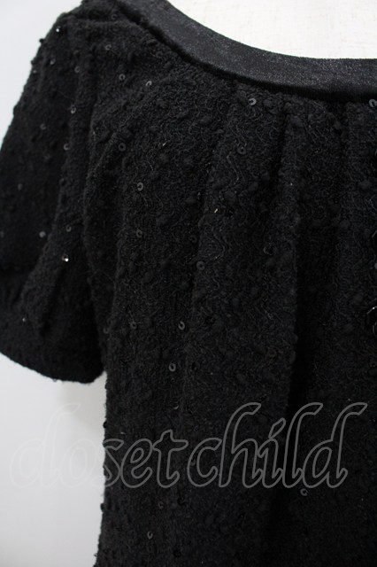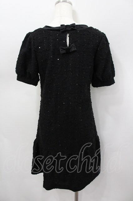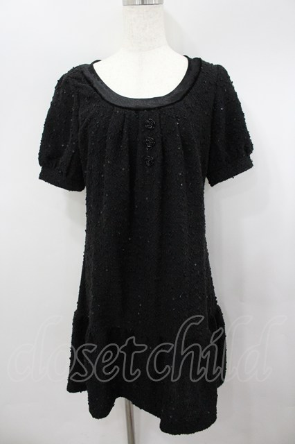 axes femme / バラ釦スパンコール使いワンピース M 黒 I-26-03-04-088-AX-OP-TE-ZI