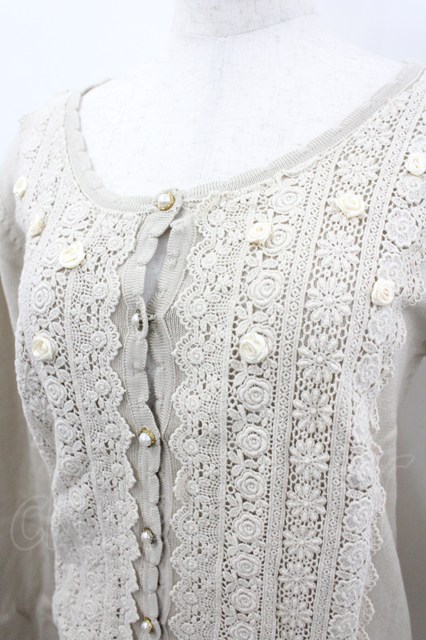 axes femme / レース&ローズニットカーディガン M ベージュ I-26-03-04-067-AX-TO-TE-ZI
