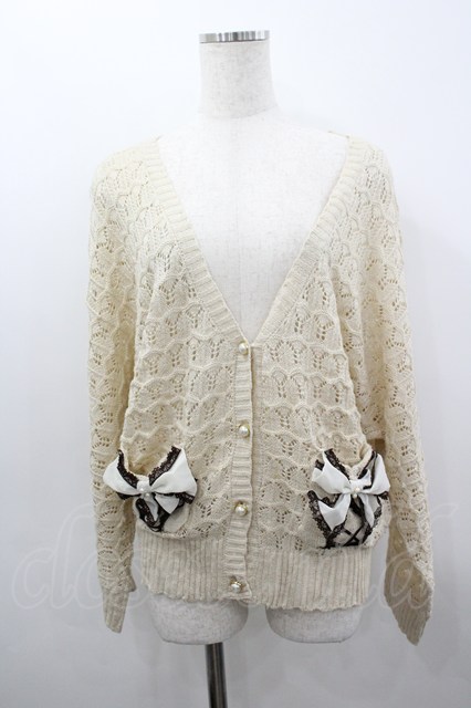 axes femme / シフォンリボンカーディガン M ベージュ I-26-03-04-049-AX-TO-TE-ZI