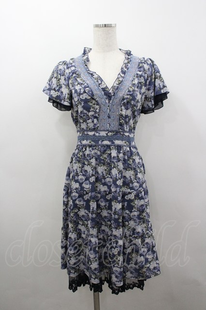 axes femme / ローズリーフ柄ティアードワンピース M ブルー I-26-03-04-052-AX-OP-TE-ZI [2100060000052122-I-26-03-04-052-AX-OP-TE-ZI]