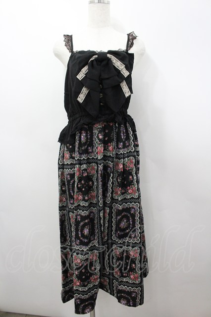 axes femme / ビッグリボン小花柄ロングワンピース M 黒 I-26-03-04-083-AX-OP-TE-ZI