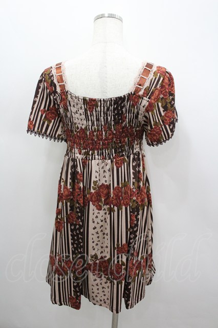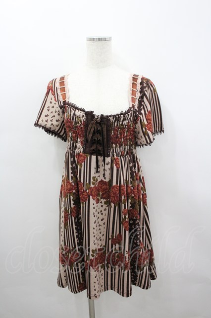 axes femme / ストライプX花プリントチュニック M ブラウン I-26-03-04-079-AX-OP-TE-ZI