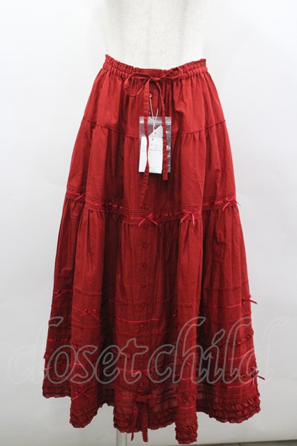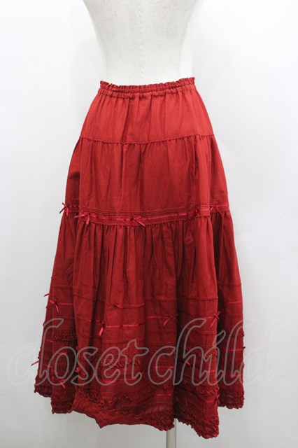 PINK HOUSE / サテンリボンいっぱいローンティアードミディスカート 赤 I-26-03-04-043-LO-SK-TE-ZI