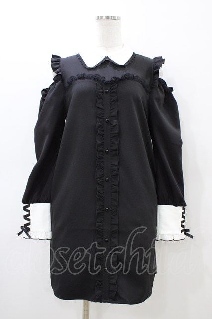 DearMyLove / フリルたっぷりオフショルシャツワンピース M ブラック H-26-03-07-1038-EL-OP-NS-ZH [2100030000088825-H-26-03-07-1038-EL-OP-NS-ZH]