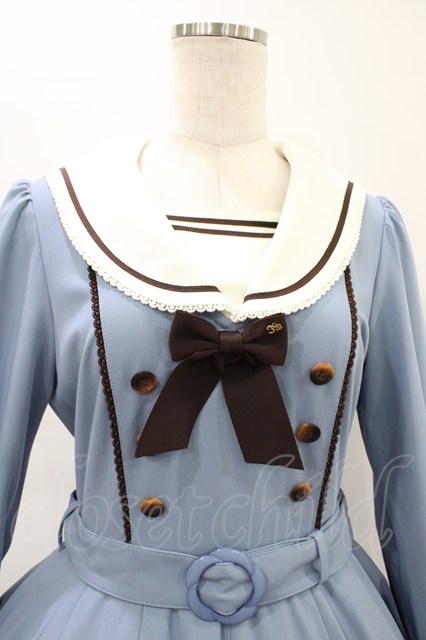 Innocent World / アビーワンピース M スモーキーブルー×ショコラ H-26-03-07-1019-IW-OP-NS-ZH