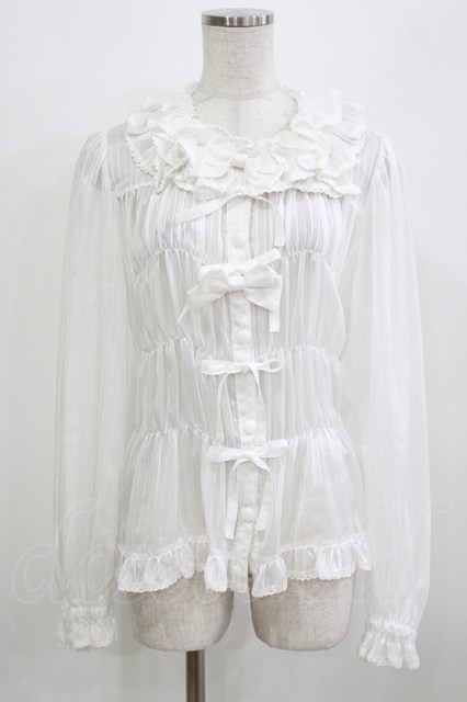 metamorphose / スクエアあきシャーリング長袖ブラウス Free 白 H-26-03-08-062-ME-BL-NS-ZH