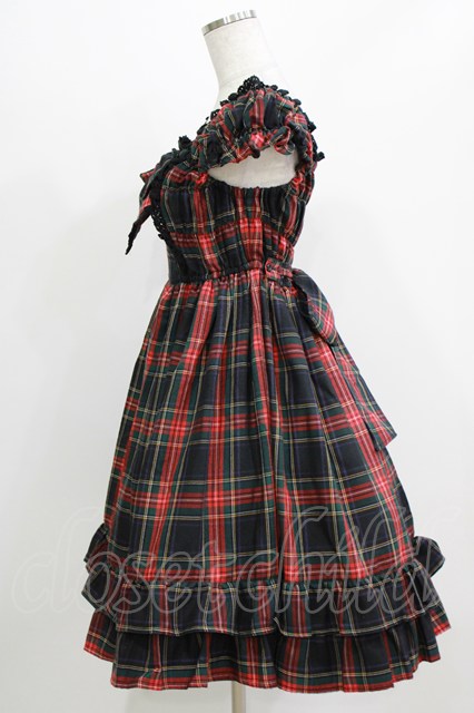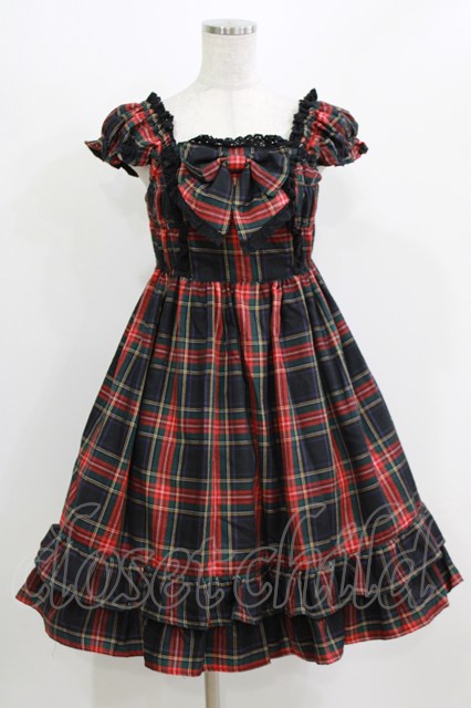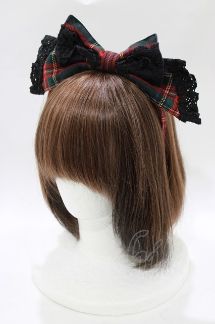 BABY,THE STARS SHINE BRIGHT / タータンチェックカチューシャ&リボンミニ袖ジャンパースカートセット Free ブラック H-26-03-08-025-BA-OP-NS-ZH