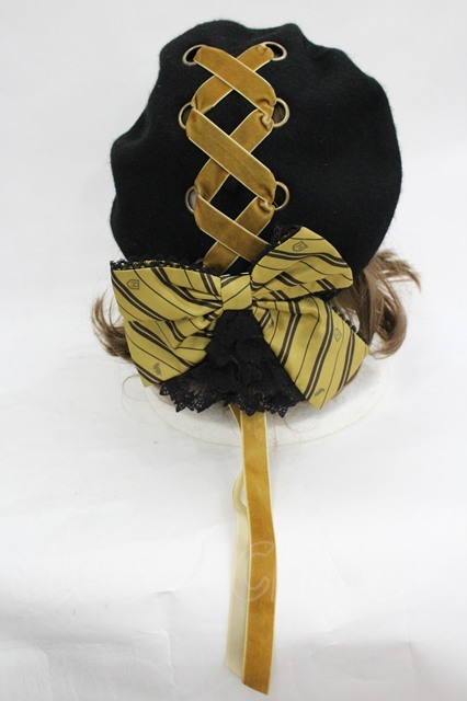 ATELIER PIERROT / ハリー・ポッター リボンブローチ付きレースアップベレー帽 ハッフルパフ(イエロー) I-26-03-05-081-EL-AC-KB-ZI