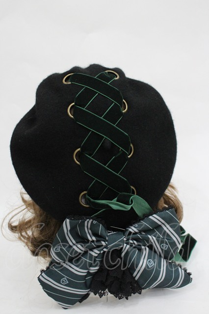 ATELIER PIERROT / ハリー・ポッター リボンブローチ付きレースアップベレー帽 スリザリン(グリーン) I-26-03-05-082-EL-AC-KB-ZI