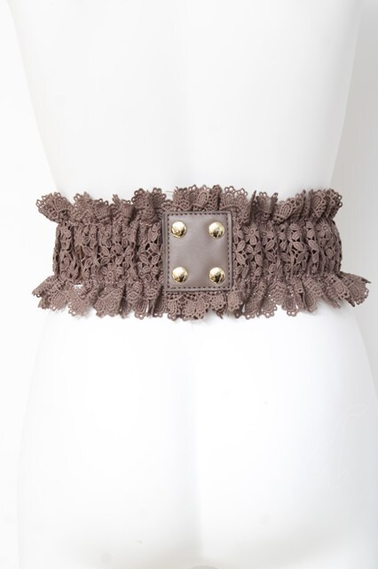 axes femme / レース編み上げゴムベルト ブラウン Y-26-03-06-032-AX-ZA-SZ-ZY