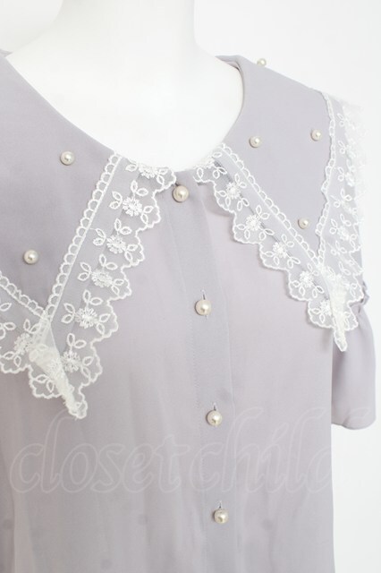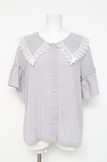 axes femme / パールビッグ襟ブラウス ラベンダー Y-26-03-06-076-AX-BL-SZ-ZY