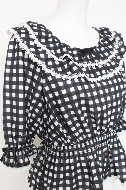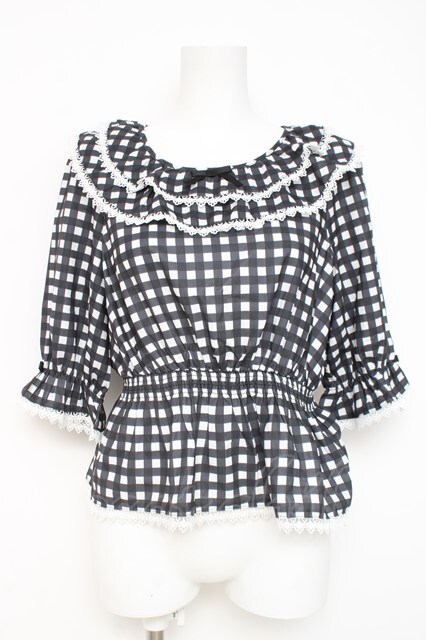 axes femme kawaii / フリル襟シャーリングブラウス M 黒 Y-26-03-06-082-AX-BL-SZ-ZY