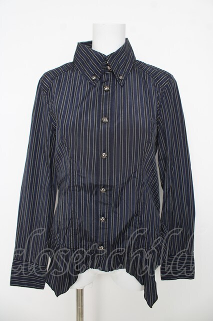 ALGONQUINS / レジメ柄イレヘムブラウス F ネイビー/ブラック Y-26-03-06-131-AL-BL-SZ-ZY