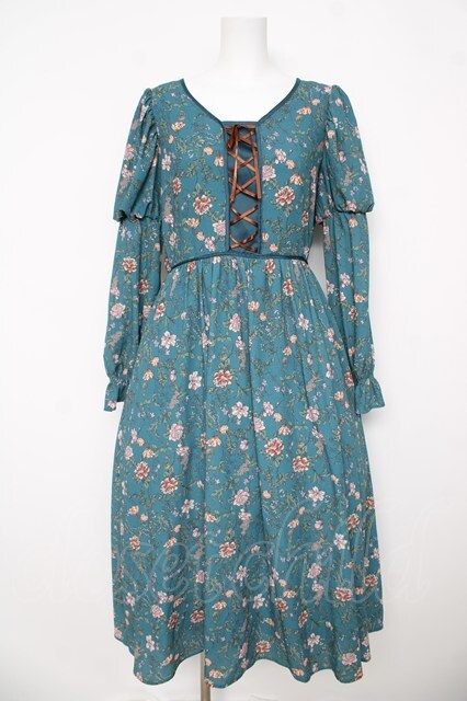 axes femme Nostalgic / ボタニカル柄レースアップワンピース グリーン Y-26-03-06-173-LO-OP-SZ-ZY