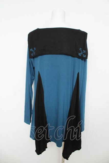 ALGONQUINS / セーラーカラーバイカラーチュニック F ブルー/ブラック Y-26-03-06-207-AL-OP-SZ-ZY