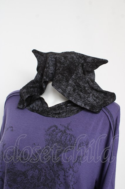 ALGONQUINS / プリント耳フードロングトップス F パープル/ブラック Y-26-03-06-209-AL-TO-SZ-ZY