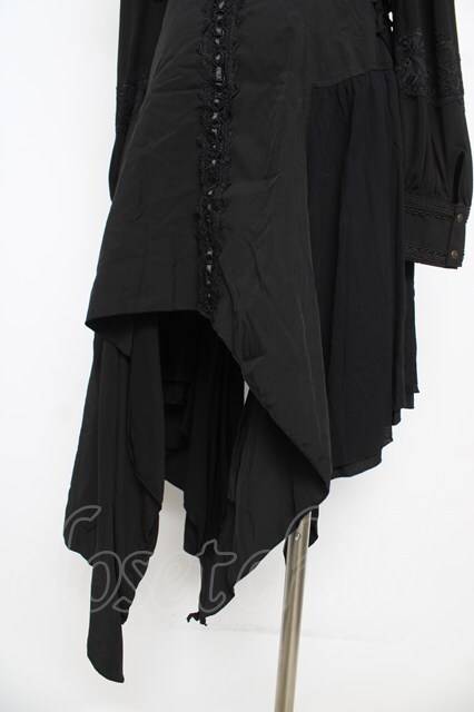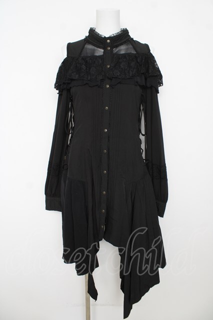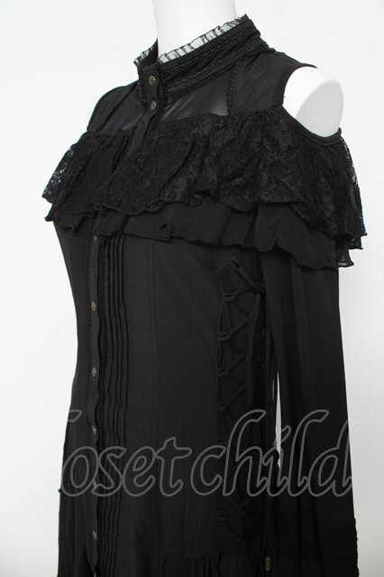 Ozz oneste / レース付き肩開きロングシャツワンピース 黒 Y-26-03-06-222-OO-OP-SZ-ZY [2100070000064810-Y-26-03-06-222-OO-OP-SZ-ZY]
