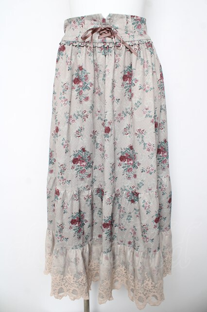 axes femme / ミュルーズ染織美術館コラボ/フェザー×フラワー柄スカート ベージュ Y-26-03-06-245-AX-SK-SZ-ZY