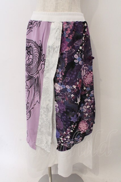 Qutie Frash / 和柄ロングスカート ホワイト×パープル O-26-03-06-055-QU-SK-IG-OS [2100080000076073-O-26-03-06-055-QU-SK-IG-OS]