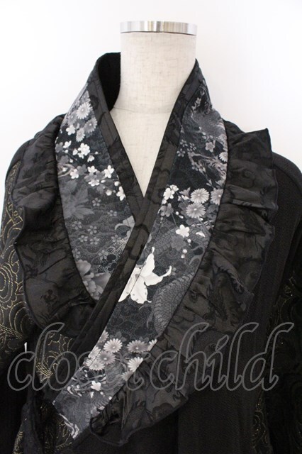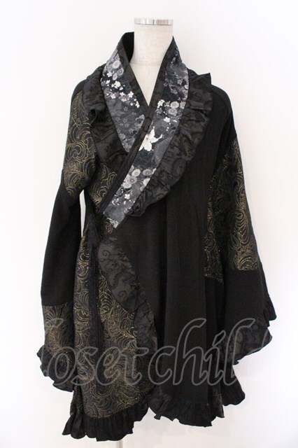 Qutie Frash / フリル着物カーディガン ブラック×ゴールド O-26-03-06-041-QU-TO-IG-OS [2100080000076056-O-26-03-06-041-QU-TO-IG-OS]