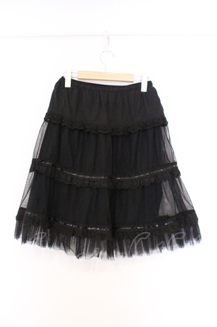 Jane Marple / トーションレース使いチュールスカート M クロ O-26-03-07-1060-JM-SK-OW-OS