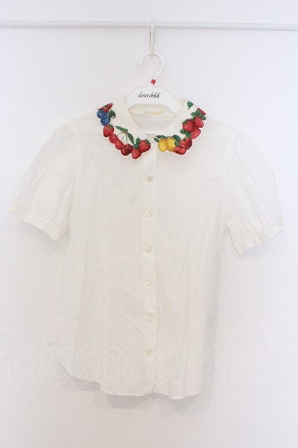 Jane Marple / フルーツピクニックのデコパージュカラーブラウス M シロ O-26-03-07-1014-JM-BL-IG-OS [2100080000076009-O-26-03-07-1014-JM-BL-IG-OS]