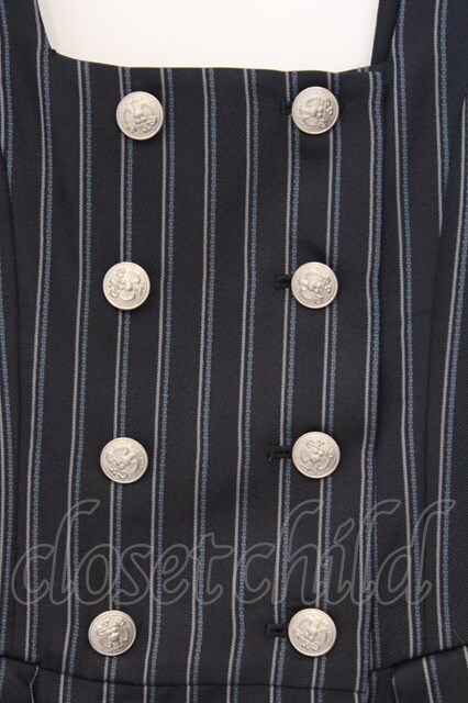 Jane Marple / レジメンタルストライプのダブルボタンジャンパースカート M ネイビー O-26-03-07-1062-JM-OP-OW-OS