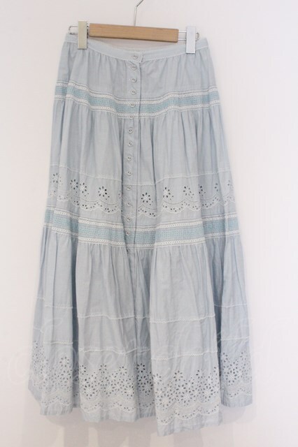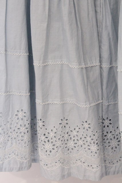 PINK HOUSE / カットワーク使いギンガムローンスカート サックス O-26-03-07-1046-LO-SK-OW-OS