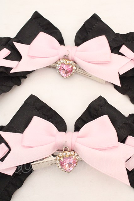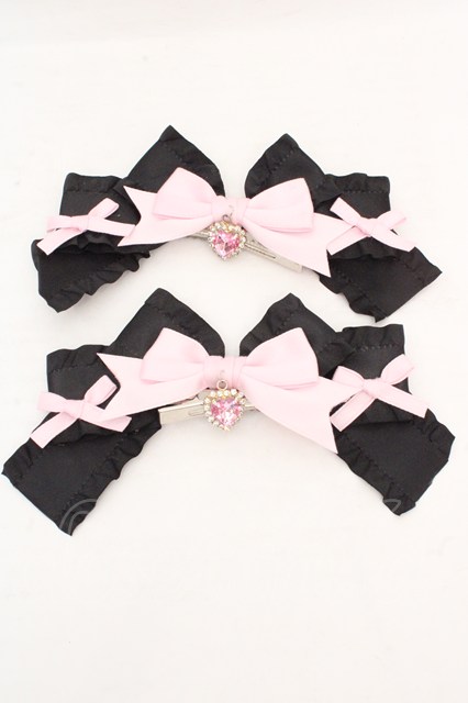Lovery Tency / 眞白ありすリボンヘアクリップ クロ×ピンク O-26-03-07-078-LO-AC-OW-OS