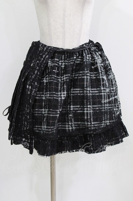 h.ANARCHY / オーバー付レース重ねチェックスカート ブラック H-26-03-09-1009-HN-SK-KB-ZH