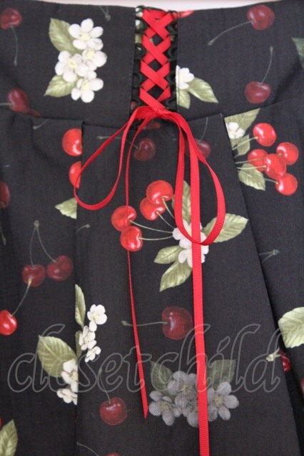 Secret Honey / チェリー柄スカート 8 クロ O-26-03-08-008-CA-SK-OW-OS